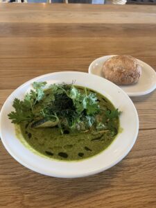 アボカドはこんなに薄く切れないし、緑なのに緑の味しないスープカレー(表現できないけどめちゃうま)