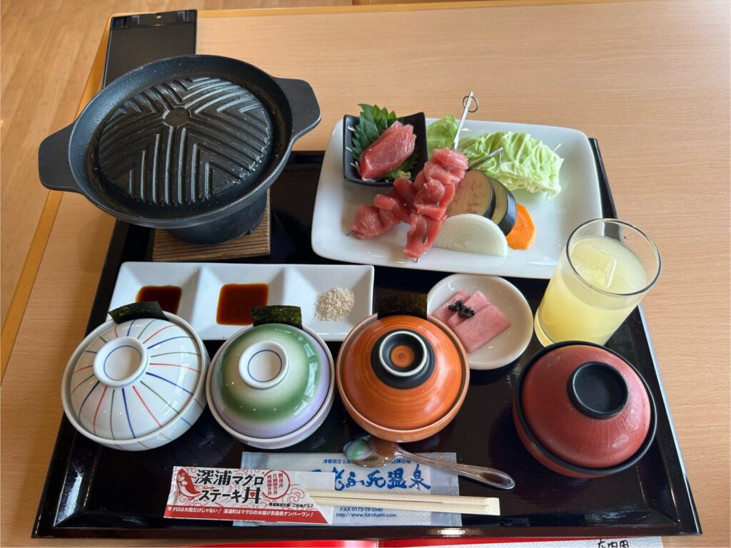 温泉旅館の中の食事処で、一番人気という「マグロステーキ丼」を頂きました。