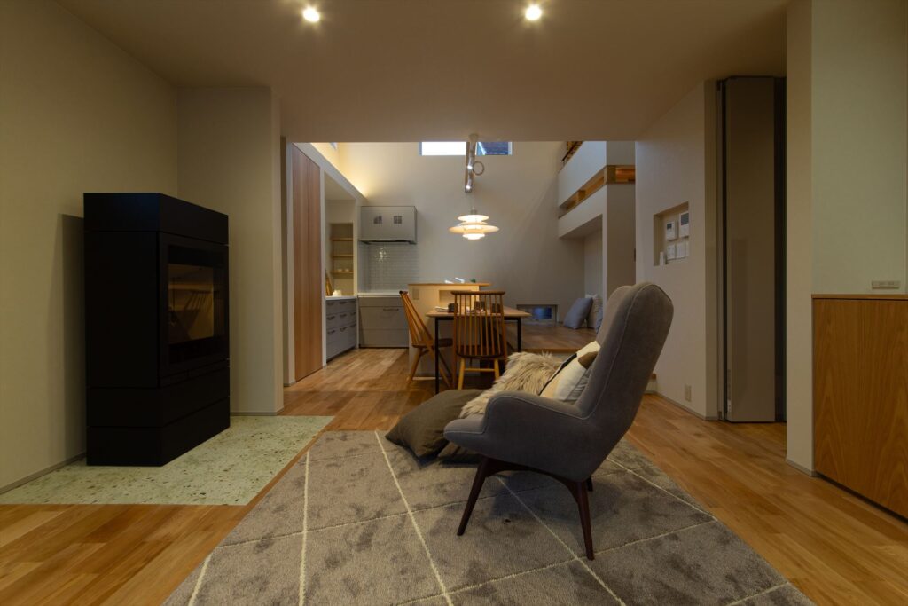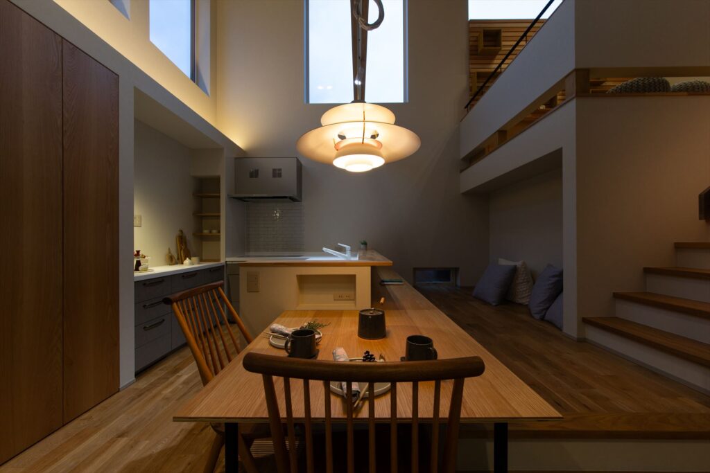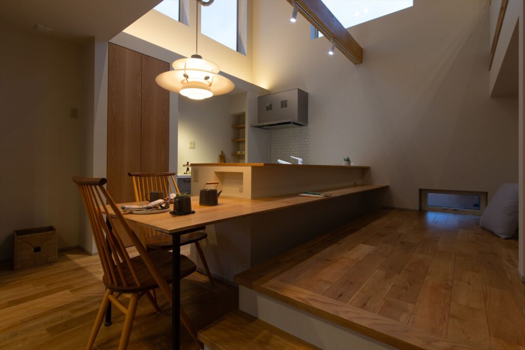ふたつのスキップがつながる座カウンターのある家