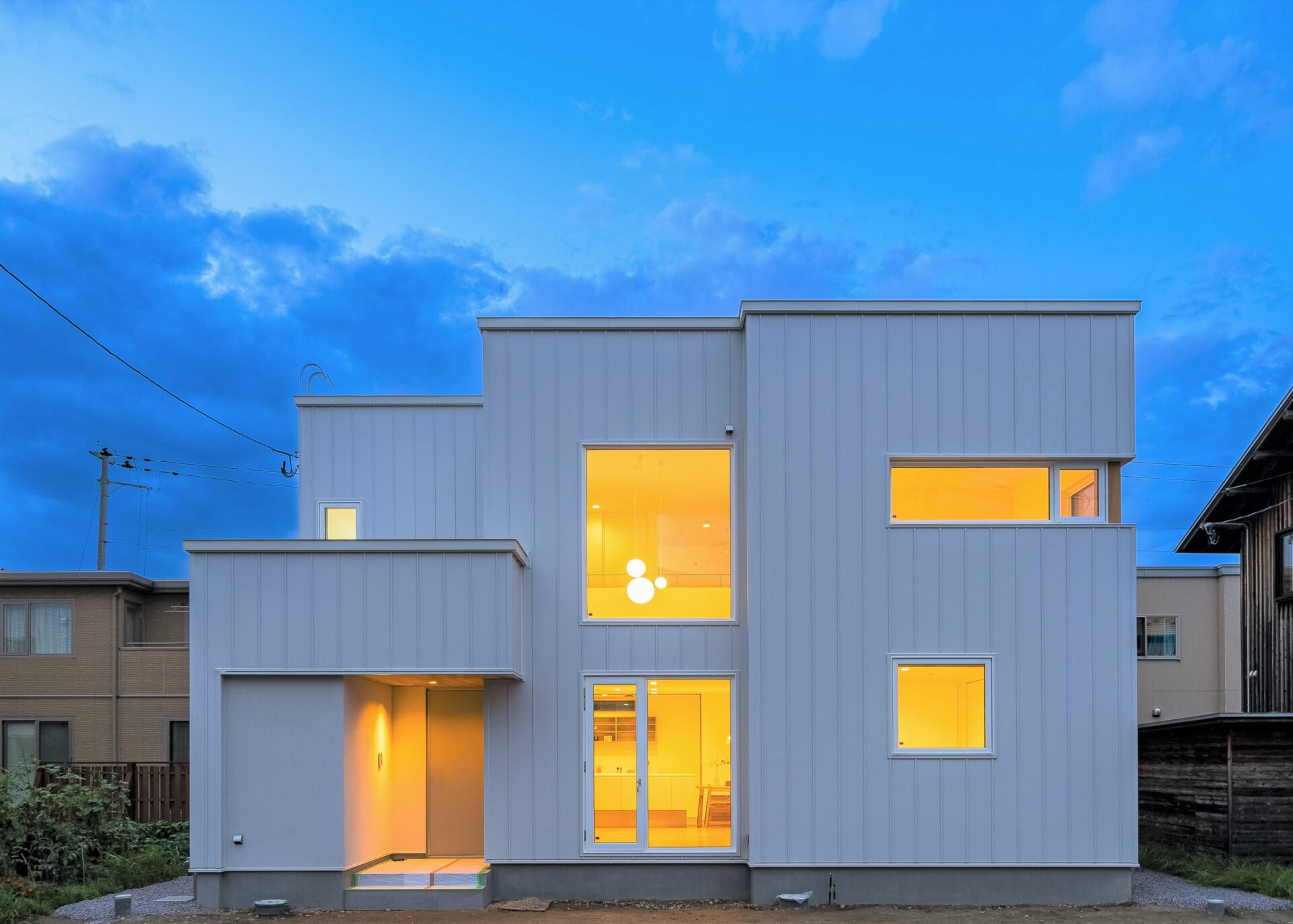 空を眺めるセンターキッチンの家